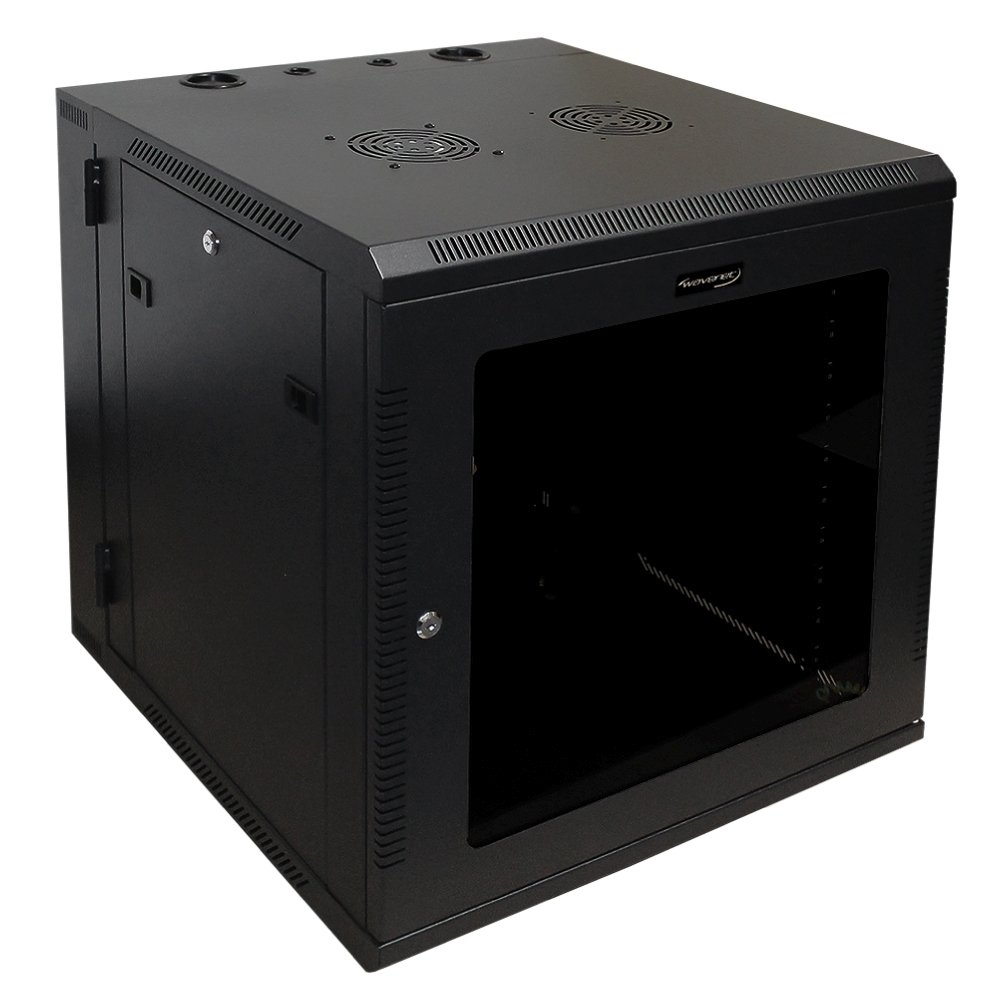 Wavenet - 12U Server Wall Mount Cabinet, 24-inch Depth, Swing-Out Network Enclosure with Locking Tempered Glass Door - Black Wavenet - 12U Server Wall Mount Cabinet, 24-inch Depth, Swing-Out Network Enclosure with Locking Tempered Glass Door - Black