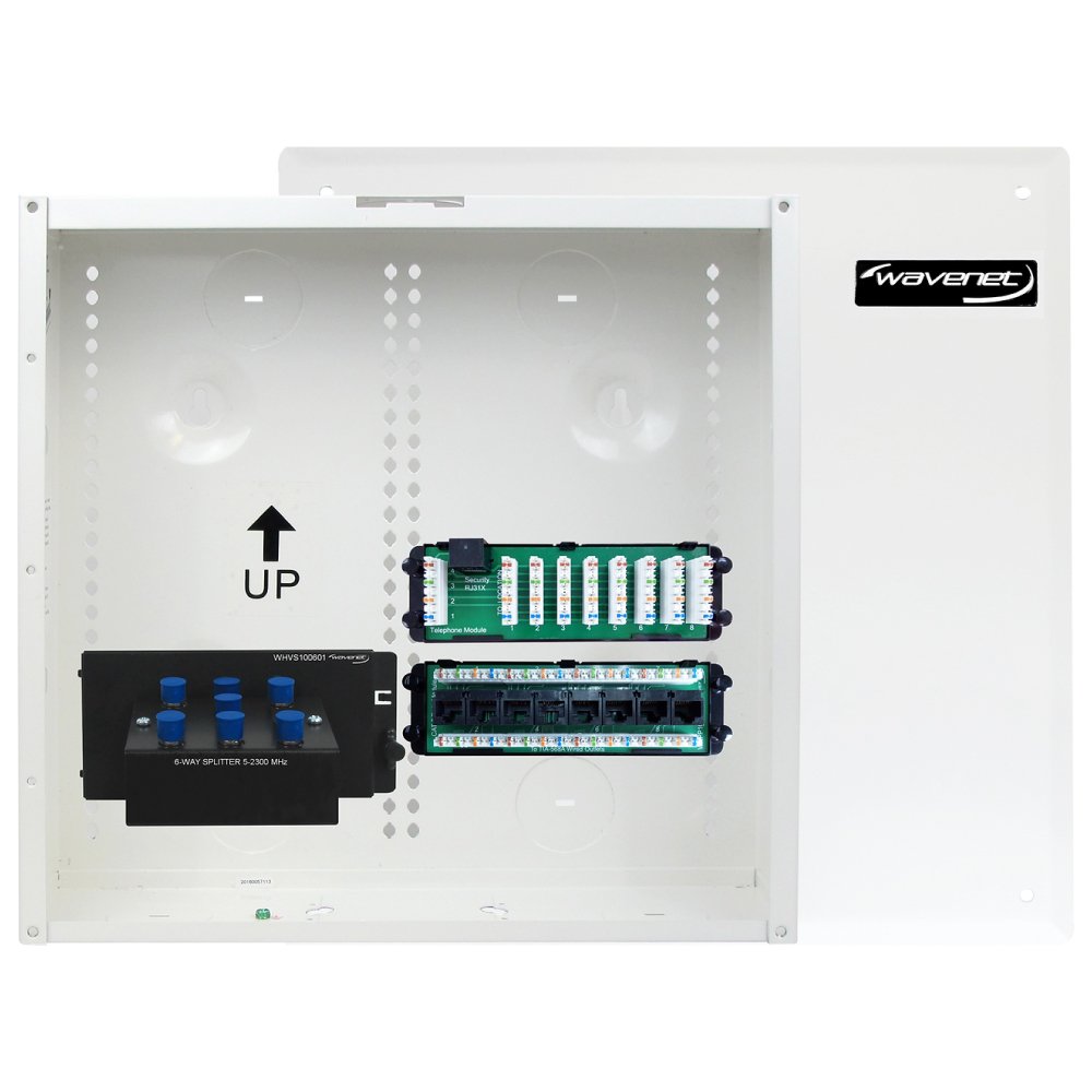 Wavenet – 14” Structured Wiring Enclosure Combo Kit with Three Modules: 8‐Port Cat6 Data, 8-Port Voice Module & 6‐port 2 GHz Video Splitter Wavenet – 14” Structured Wiring Enclosure Combo Kit with Three Modules: 8‐Port Cat6 Data, 8-Port Voice Module & 6‐port 2 GHz Video Splitter Wavenet – 14” Structured Wiring Enclosure Combo Kit with Three Modules: 8‐Port Cat6 Data, 8-Port Voice Module & 6‐port 2 GHz Video Splitter