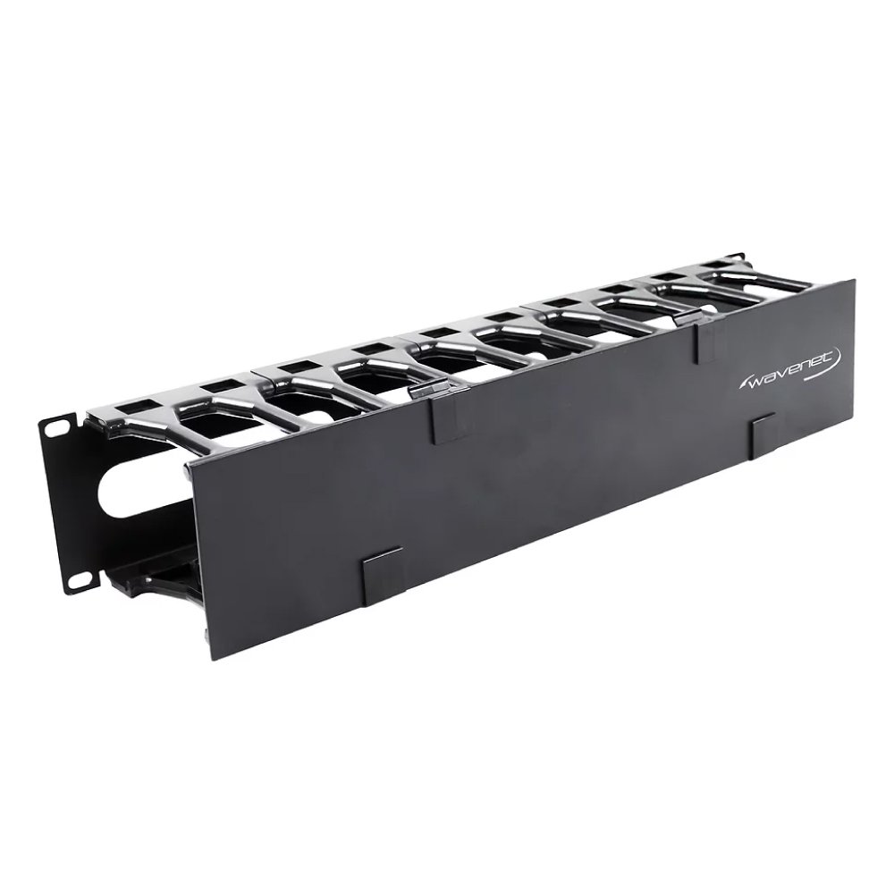 Home > Wavenet – 2U 19inch Single‐Sided Horizontal Cable Manager - Plastic Finger Duct with Cover for 2‐Post and 4‐Post Server Racks, Metal – Black