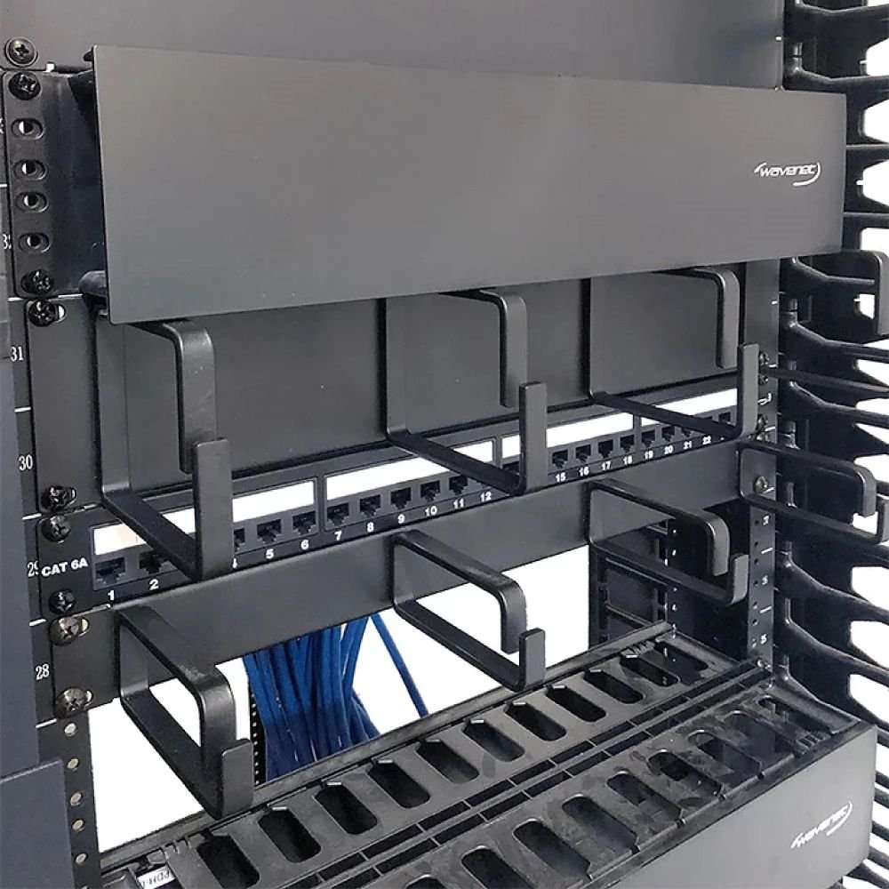Wavenet – 2U 19inch Cable Management Panel, 4 D-Ring Cable Manager Organizer for Bracket, Cabinet, or Rack Mountable, Steel – Black Wavenet – 2U 19inch Cable Management Panel, 4 D-Ring Cable Manager Organizer for Bracket, Cabinet, or Rack Mountable, Steel – Black